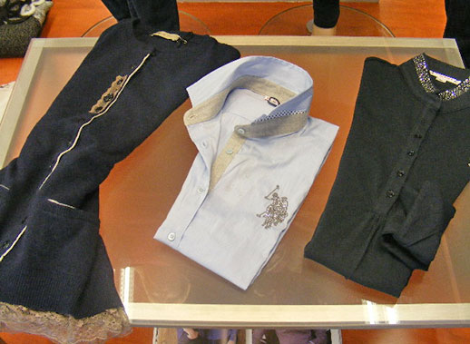 Sopra una galleria dei capi in vendita nel negozio di Maucci che si possono anche acquistare on line attraverso il sito «www.maucciabbigliamento.it»